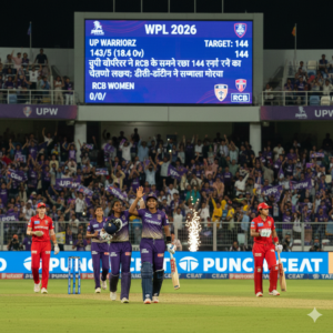 नवी मुंबई: सोमवार को महिला प्रीमियर लीग (WPL) 2026 के पांचवें रोमांचक मुकाबले में रॉयल चैलेंजर्स बेंगलुरु (RCB) ने टॉस जीतकर यूपी वॉरियर्स (UPW) के खिलाफ पहले गेंदबाजी करने का रणनीतिक फैसला किया। डीवाई पाटिल स्पोर्ट्स एकेडमी के मैदान पर, यह मैच शुरू में आरसीबी के पक्ष में जाता दिख रहा था, लेकिन यूपी की अनुभवी खिलाड़ियों ने पासा पलट दिया।